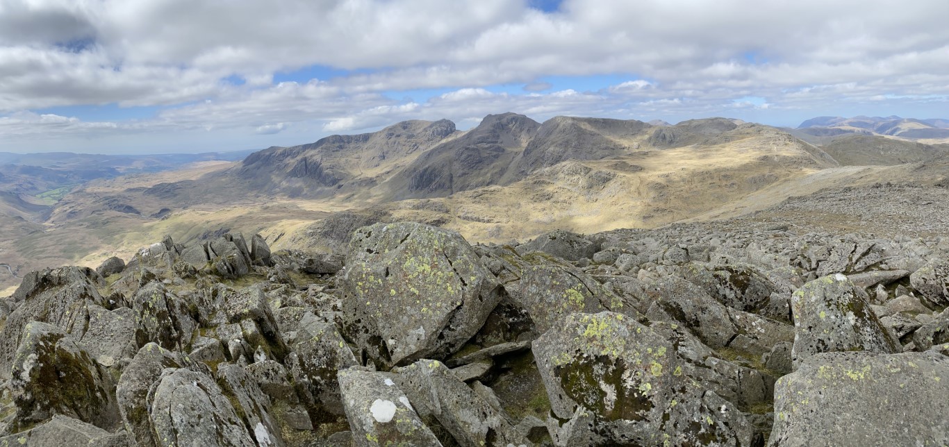 Panorama to include Bowfell and the Great Slab on the right. Left click to enlarge, click again to return.