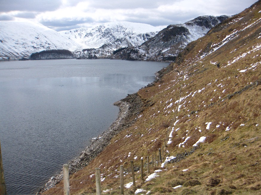 We had lunch out of the wind in the woods. Looking at the start of the route up the Riggindale ridge to High St.