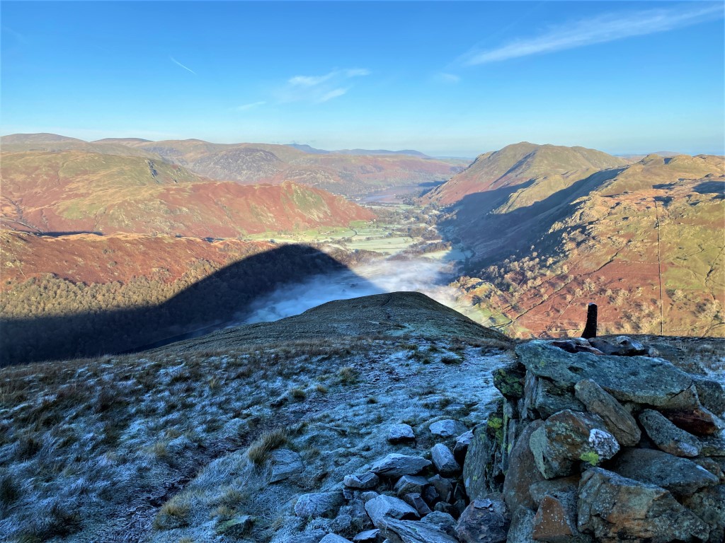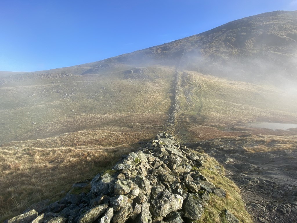 Looking across to the beacon on Thornthwaite Crag. Mist was starting to drive up from the valley.