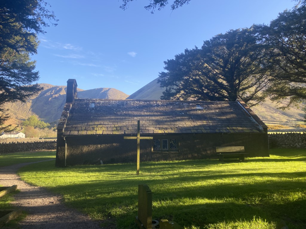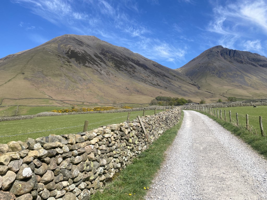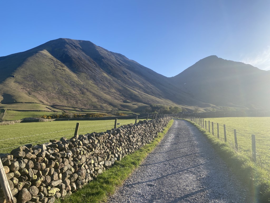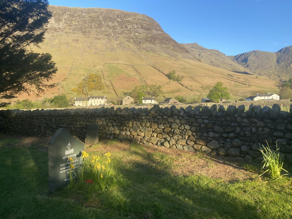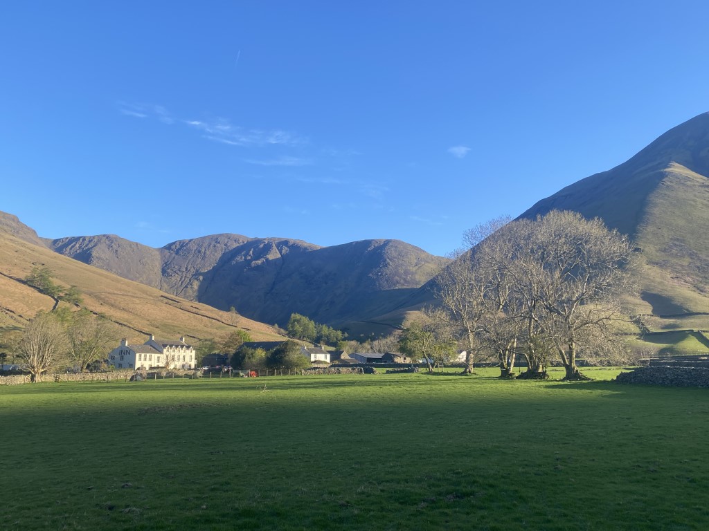 View to the Wasdale Inn with the slope of the front of KIrk Fell on the right.
