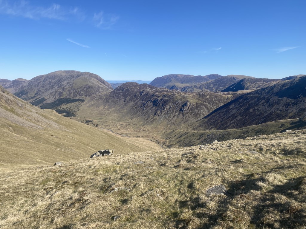 View down into Ennerdale. I can see Black Sail Hut with the naked eye. Haystacks and the High Stile range.